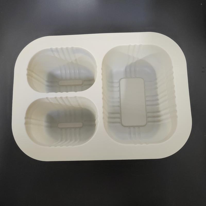 صندوق طعام جاهز للأكل مصنوع من نشا الذرة القابل للتحلل الحيوي، مزود بثلاث شبكات، قابل للغلق بالحرارة