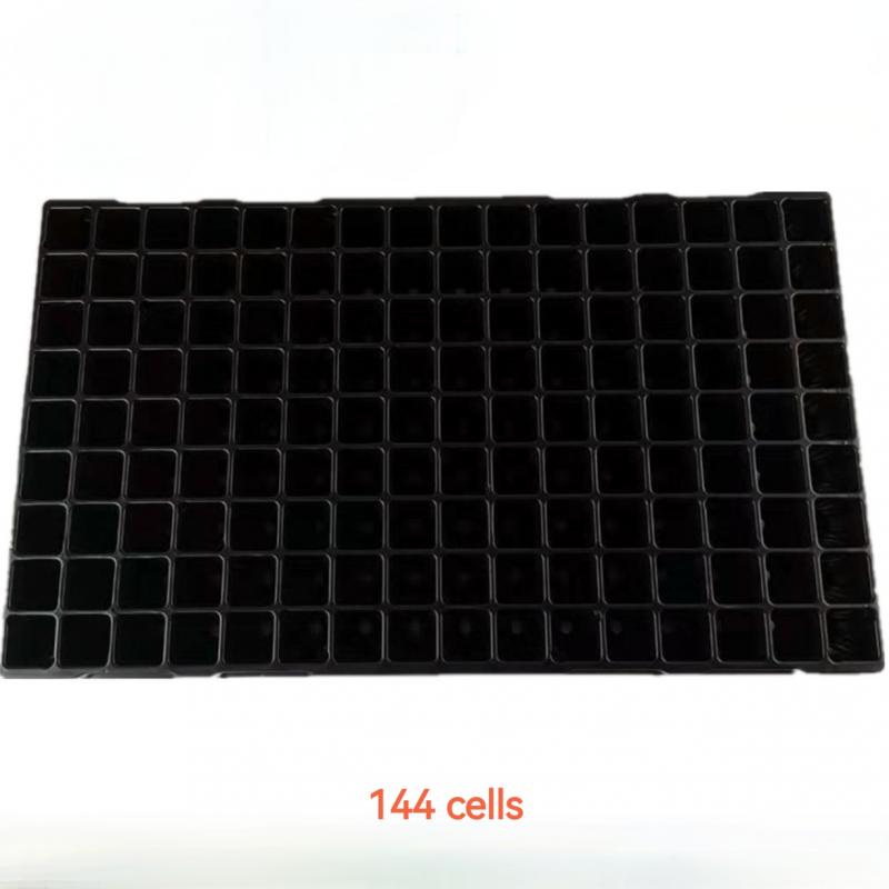 17gصينية شتلات بلاستيكية سوداء مكونة من 144 فتحة، صينية سفلية لزراعة مشتل البذور