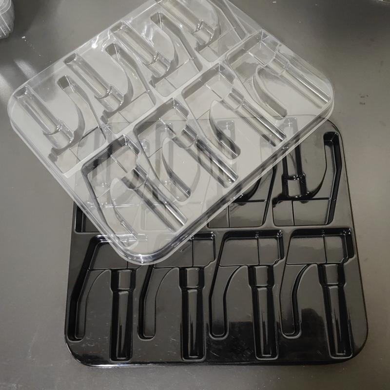 56gصينية حاوية تغليف مفرغة من الهواء لأدوات طبية بلاستيكية شفافة/سوداء مكونة من 8 تجاويف من مادة PET مخصصة